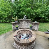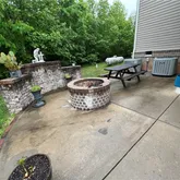 Patio with a fire pit and stamped concrete walkways in both front and reaSec Floor : Includes a large recreation area