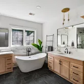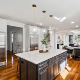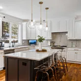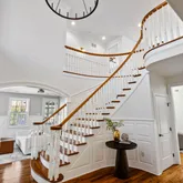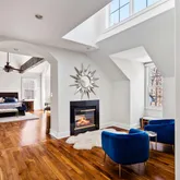 Recently purchased, the new owners saw to meaningful and comprehensive updates and renovations to what was already and beautiful home. Dramatic 2 story foyer opens to the living room, made family friendly with a projector and access to a three-season screened and glassed eastern facing solarium. The volume ceiling continues into a stunning family room with fireplace flanked by custom shelving and brightened by an oversized window. This gathering space flows into the breakfast room with wide upholstered...Recently purchased, the new owners saw to meaningful and comprehensive updates and renovations to what was already and beautiful home. Dramatic 2 story foyer opens to the living room, made family friendly with a projector and access to a three-season screened and glassed eastern facing solarium. The volume ceiling continues into a stunning family room with fireplace flanked by custom shelving and brightened by an oversized window. This gathering space flows into the breakfast room with wide upholstered window seat and steps away to a chic and newly updated kitchen. Pulled from the pages of a design magazine, crisp, white cabinets surround a large, seated quartzite center island with matching slab backsplash and gold hardware. More updates to the home include a renovated butlers pantry adjacent to the dining room and a large office on this first level customized with a wall of shelving for display, and storage. Ascend one of 2 staircases to 4 bedrooms each with en-suite bath. The primary bedroom is a suite into itself. A sitting area and large bedroom share the warmth and sophistication from a double-sided fireplace. The primary bath, a true spa experience, and only recently completed, pairs white oak cabinetry, with striking large format tile, a deep free standing soaking tub, large, and seated shower. The third level offers a second large office, ideally located for privacy. A resort quality lower level, with exits to a stone path leading to the gardens and flat yard. Handsome tiled floors laid in a herringbone pattern add warmth and practicality…and entertaining kitchen, recreation area and gym which has functioned as the additional 5th bedroom along with a large bath completed this level.