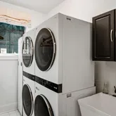 Second level Laundry Room with two, full size, washers and dryers and LG Styler Steam Closet