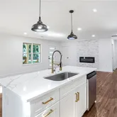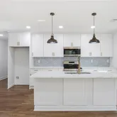 - Kitchen Features: Cabinets White, Eat-in Kitchen, Kitchen Island, Solid Surface Counters, View to Family Room