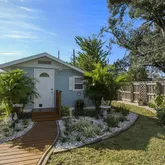 Welcome to this meticulously updated home where old Florida cottage meets modern comfort, and effortless outdoor living. This stunning property boasts a host of recent renovations, ensuring peace of mind and convenience for its new owners. Step inside to discover a fully remodeled kitchen (2021) with sleek new appliances, perfect for culinary enthusiasts. The main and guest bathrooms have been completely transformed (2023/2024), offering spa-like retreats. Fresh interior paint (2023) enhances the bright, inviting spaces, while whole-home impact windows and doors (2018) provide superior protection and energy efficiency. Upgrades abound: new A/C (2021) with transferable maintenance contract from Bowersox, a new water heater (2024), complete plumbing re-piping (2021), and an upgraded electrical system with all-new wiring and generator connections (2021), including an outdoor cabinet ready for your whole-house generator. An alarm system (2021) adds an extra layer of security. Outside, the magic truly unfolds. A new roof covers the home, lanai, and shed (2025, with transferable warranty), complemented by fresh exterior paint (2025). The enclosed lanai features a convenient counter area with sink and cabinetry, ideal for entertaining. Relax in the hot tub/spa under a beautiful pergola with sail fabric (pump and blower replaced 2024), or gather under additional pergolas shading the outdoor eating area and kitchen/grilling zone. All wood decking has been refinished with new stain/oil (2025), and a new irrigation system (2025) keeps the fantastic front and back landscaping lush. Landscape lighting highlights the beauty after dark, while a rainwater capture system, new water pump and filtration, and an outdoor potting/planting area with storage and bench promote sustainable living. The insulated shed (2024/2025) is a standout, complete with A/C, electricity, cabinetry, and finished plywood walls and floors—perfect for a workshop or studio. The regularly maintained Septic System with a recent inspection, should add peace of mind for potential new owners. This home is truly move-in ready and with no deed restrictions, CDD's or HOA, is perfect for your permanent home or rental opportunity. Embrace the Florida lifestyle in this oasis of updates and serenity!