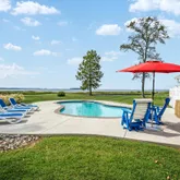 . As you step inside, you'll be greeted by the warmth of Provenza engineered hardwood floors, a custom solid wood entry door, and big views that frame the captivating water views steps away. The fully renovated chef's kitchen is a culinary dream, featuring quartz countertops, stainless steel appliances, dual wall ovens, and 6-burner gas range that's sure to delight even the most discerning cooks. Imagine sipping your morning coffee or enjoying a glass of wine while cooking up a storm, with the serene water views as your backdrop. The main level's open layout seamlessly connects the dining room, living areas, and kitchen, creating an ideal space for entertaining and making memories with family and friends. The intimate porch off the dining room is the perfect spot to enjoy a quiet morning or a sunset cocktail, with the water views providing a serene atmosphere. Upstairs, the primary suite is a tranquil retreat, complete with a newly built Duradeck balcony (2025) that offers panoramic views of the surrounding waters. The additional three bedrooms, all with water-facing windows, and a renovated hall full bath make this level the perfect haven for family and guests. The true magic happens outdoors, where the nearly 5-acre property unfolds into a stunning oasis. The heated saltwater pool (2021) is the perfect spot for pool parties and relaxation, surrounded by patios for lounging and landscaped grounds. There are so many more opportunities to add gardens, pergolas, chicken coop and more. As you gaze out across the water in multiple directions, you'll be treated to picturesque views of a lighthouse and a charming old-time windmill, views of the boats sailing to St. Michaels, adding to the property's natural beauty. And, if you're lucky, you might even catch a glimpse of the two resident white swans on the pond and 2 bald eagles perched on the lighthouse that call the property home, or gliding effortlessly across the water. Imagine hosting unforgettable gatherings, with an extra pool enclosure that can be easily converted into a vibrant pool club room or outdoor kitchen. The fireplace is already there. The possibilities are endless, from sunset soirees to family reunions, weddings, and the serene water views provide a breathtaking backdrop for any celebration. As a resident of Kilby Point, you'll enjoy a 1-mile waterfront walking/golf cart path, and a pier/dock, 1 available boat slip (not deeded, subject to availability). The property's convenient location, to Route50 and the Bay Bridge, makes it easy to explore Annapolis, Washington, D. C., and the charming destinations on Maryland's Eastern Shore, Easton, St Micheals, Oxford and more. This is a rare opportunity to own such a unique waterfront retreat with extensive upgrades, captivating views, and endless possibilities for entertainment and relaxation. Come make your memories today.