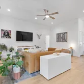 - Interior Features: Ceiling Fan(s), Open Floorplan, Quartz Counters, Recessed Lighting, Soaking Tub, Walk In Closets