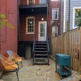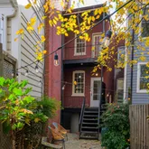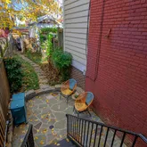 This interior row house sits on an exceptionally wide front lot and landscaped rear garden with flagstone patio. Oh, and it also comes with off-street parking in the back!
