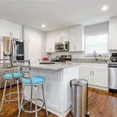• Eat-in kitchen with an oversized quartz island and high-end, app-controlled appliances