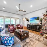 - Exterior Features: Gas Grill, Landscaped, Fire Pit, Outdoor Kitchen, Lighting, Outdoor Speakers, Porch