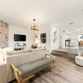 Fully reimagined in 2023, the home features dual primary suites, each with spa-caliber baths and walk-in closets that actually fit your wardrobe. The main level unfolds with vaulted ceilings and abundant light, anchored by a fireplace and flowing seamlessly into a chef's kitchen with upgraded granite and high-end finishes. Slide open the doors to your private patio—your new favorite room for morning espresso or sunset cocktails.