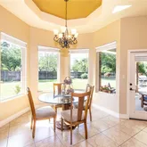 - Interior Features: AllBedroomsDown, Bookcases, BuiltInFeatures, TrayCeilings, CeilingFans, EntranceFoyer, HandicapAccess, HighCeilings, PrimaryDownstairs, LivingDiningRoom, MainLevelPrimary, OpenFloorplan, PullDownAtticStairs, RecessedLighting, SeparateShower, TubShower, Vanity, WalkInClosets, BreakfastBar, CustomCabinets, EatInKitchen