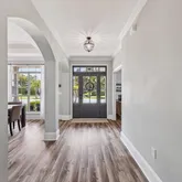 The family room immediately impresses with luxury vinyl plank flooring, updated lighting, and a cozy fireplace accented by a double tray ceiling, creating a warm and welcoming atmosphere. The gourmet kitchen features stainless steel appliances, granite countertops, and a center island, perfectly designed for both casual meals and entertaining. A walk-through butler's pantry connects to the dining area, framed by elegant arched entryways that add architectural charm and flow.