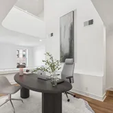 Designed for those who appreciate loft-style living, the home flows seamlessly from one space to the next. The main level features a two story living room, generous dining area and a fully renovated kitchen with stainless steel appliances, gas cooking and quartz countertops, upstairs is a flexible den space ideal for a home office, studio, or reading area.