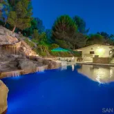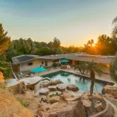 - Supplement: Pebble tech finish on pool and spa. Outdoor bbq area and outdoor shower. Large enclosed dog run. The secondary bedrooms are joined by a media/playroom which could be an additional office. There is also an optional office/ sitting area off of the master bedroom complete with a second fireplace. The large kitchen has beautiful natural wood maple cabinets, a built in sub zero refrigerator, a wine refrigerator and ample cabinet and storage space along with a built in desk and breakfast nook table. The large center island includes a vegetable sink with a second garbage disposal. Adjacent to the kitchen is an inviting dining room which looks out to the mountains. Anderson wood windows and sliders throughout the home as well as slate flooring. The home is equipped with solar and transfer information will be provided by Sellers.