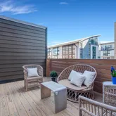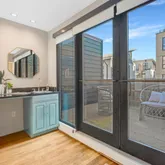The upper levels are designed for comfort and versatility. On the second floor, the primary suite serves as a private sanctuary with its own ensuite bathroom featuring both a walk-in shower and a deep jacuzzi tub for ultimate relaxation. A second sizable bedroom on this level has easy access to the well-appointed en-suite bath. Heading up to the top floor, you’ll discover a sun-drenched loft equipped with a wet bar—an ideal spot for a home office that leads directly out to your private roof deck with neighborhood views.