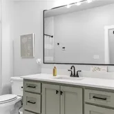 Primary suite features his & her walk-in closets w/ built-ins & laundry access, double vanity, walk-in shower, and tub. Secondary bath includes a soaking tub.