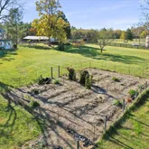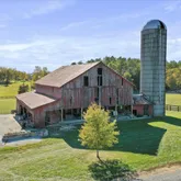 Outdoors, a two-story barn with electricity offers three stalls, a workshop, and plenty of room for creativity. Additional structures include a large metal shed, smaller ruminant barn and grain silos converted into unique chicken houses.