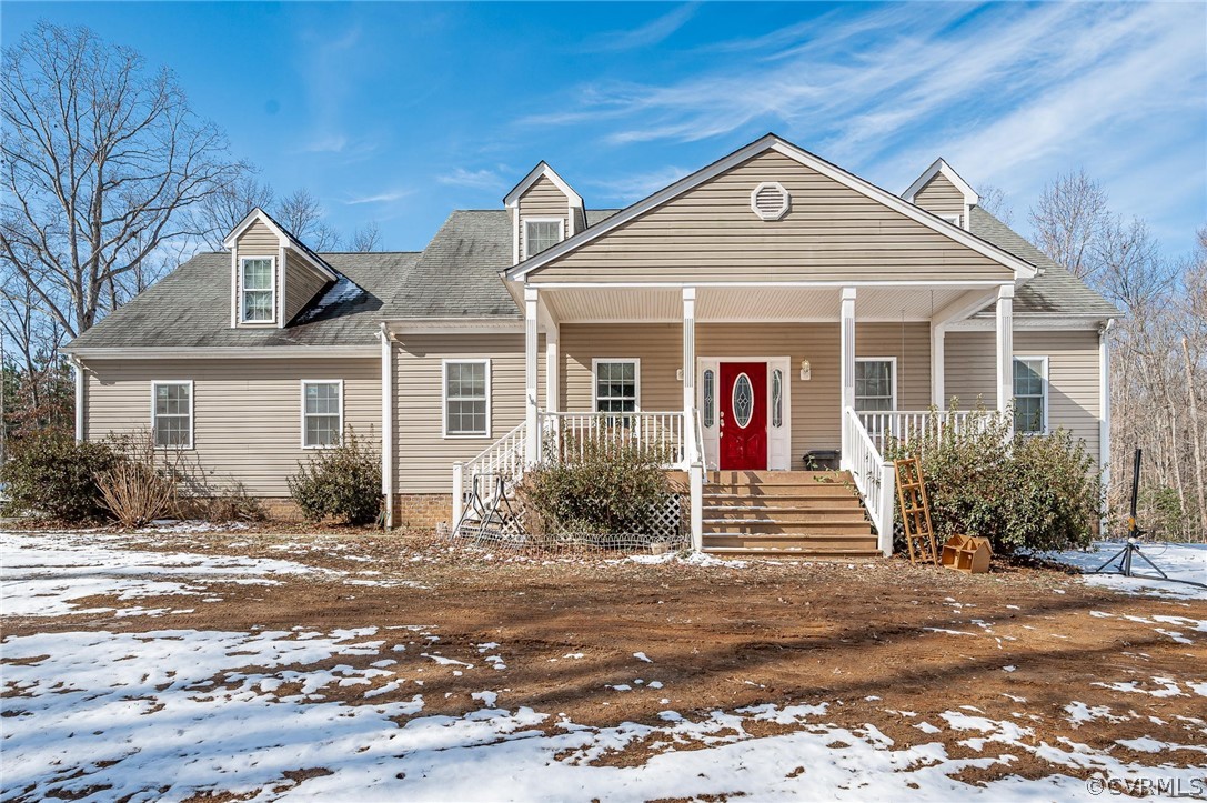 As you approach the covered front porch and enter the home, you are greeted with gorgeous wood floors, vaulted ceilings, large family room...This home has over 2700 sq ft located on almost 3 acres just minutes from I-64 and the Goochland line on a peaceful and private road. It features 3 beds, PLUS a large bonus room, and 2.5 baths. With a little paint, new carpet, some TLC, this will be a beautiful home to make your own! 2 car attached garage and Laundry/Mud room with lots of storage space throughout