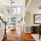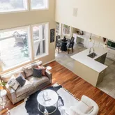 Step inside and let the wide-plank acacia hardwood floors guide you into a light-filled main living space, where soaring 20-foot ceilings and floor-to-ceiling windows bring the outdoors in. The open-concept layout is designed for both comfort and connection, with defined spaces that make entertaining easy. Host dinner parties in the spacious dining room, gather in the inviting living room with custom built-ins, or cook and converse in the updated kitchen with its large island and sunny breakfast nook.