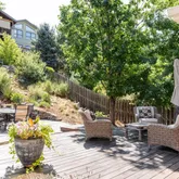 Step outside to a private, east-facing backyard designed for Colorado living, with a Tigerwood deck, bluestone patio, mature landscaping, and a custom fieldstone retaining wall. The fully fenced yard and 6-zone sprinkler system make it as functional as it is beautiful.