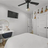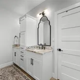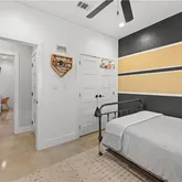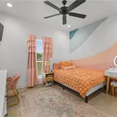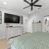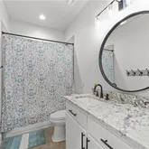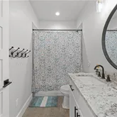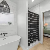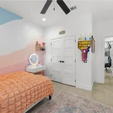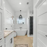 The spacious primary suite offers a spa-like retreat with a stand-alone soaking tub, separate walk-in shower, and thoughtfully designed closet space with built-ins. Each additional bedroom is generously sized with functional storage throughout.