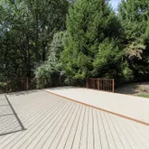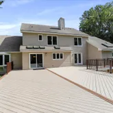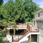 private back deck and patio nestled amidst mature trees. Built on a mostly forested 1.85 acres,