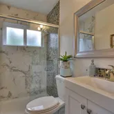 - Bathroom: Shower and Tub, Solid Surface, Stall Shower, Tile, Tub, Updated Bath