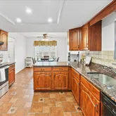 The updated eat-in kitchen offers plenty of cabinet space and everything you need for everyday cooking or hosting friends and family.