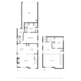 - 1st Story Floor Plan: Den/Great Room, Kitchen, Primary Bedroom, 1 1/2 Bath, Laundry Room