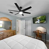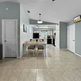 Experience the pinnacle of move-in-ready living at 136 Paul Revere Road. This meticulously renovated 3-bedroom, 2-bathroom pool home sits on an expansive, oversized lot, offering the perfect blend of modern interior luxury and outdoor freedom. Step inside to a home that is tiled throughout and illuminated by custom designer lighting. The heart of the home is a beautifully designed kitchen featuring a floating island, a tremendous amount of counter space with upgraded hardware, a stylish tiled backsplash, and an open layout perfect for entertaining. The functional design extends to a massive laundry room equipped with a washer, dryer, and dedicated folding table. The interior is sold fully furnished with nearly brand-new furniture, including full bedroom sets, 4K TVs in every room, and custom-designed ceiling fans with integrated lighting. Outside, your private retreat awaits. The completely screened-in pool is surrounded by a stunning stamped concrete deck, all set within a large, fenced-in backyard with plenty of room for family and play. Handymen and hobbyists will love the 12x15 wired workshop, which comes fully stocked with lawn tools and power equipment. Location Highlights: