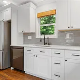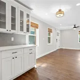 - Kitchen Features: Cabinets White, Stone Counters, View to Family Room