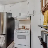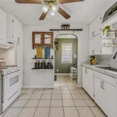 - Room Description: Tile Floor, Gas Stove/Oven, Ceiling Fan, White Cabinetry