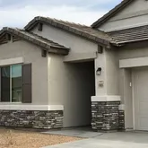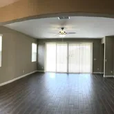 Kitchen features stainless steel appliances, granite countertops and pull out cabinets. Home backs to greenbelt and is fully landscaped with grass and extended patio slab. Cabinets in garage. Two year lease minimum required.Well maintained home in Rancho Cabrillo near Vistancia. Floor plan has split Master bedroom, two central bedrooms and one more up front. In addition, there is a den/office with double door entry. Bright open great room with extra large sliding patio door. Plank tile floors throughout,