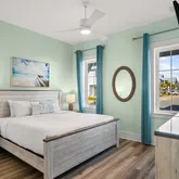 A large bedroom with private balcony and Gulf views