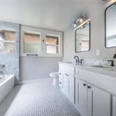 - Room Description: Nicely updated bathroom off the main living area with dual sinks and lots of natural light.