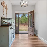 - Public Remarks: Stunning farmhouse on 11.29+/- high and dry acres! This 3-bedroom home with 4th bedroom/office was built in 2020 and includes two full baths featuring dual vanities and over-the-top luxury, a half-bath for guests, and two huge porches for outdoor entertaining! The custom woodwork throughout, oversized vinyl plank flooring, and incredible custom trim and window/door casings elevate the space. The kitchen is the true showstopper, overlooking the equally stunning living space with custom shelving and a gas fireplace. The enormous pane glass windows frame views of the property, which features acres of planted pines (with agricultural tax exemption), cleared acres for plenty of space, fruit trees, fenced acres for livestock, and a 3700 sqft fenced garden. The 30'x30' garage can be used as a workshop, barn for animals, or storage for an RV/boat/toys. This combination of luxurious interior and superb outdoor space won't last long! VA-qualified buyer may qualify for 3.125% assumable mortgage.