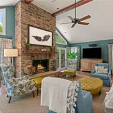 - Interior Features: BeamedCeilings, CathedralCeilings, GourmetKitchen, CeilingFans, Fireplace