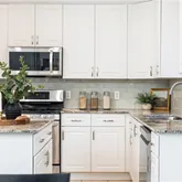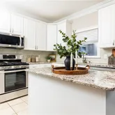 - Kitchen Features: Cabinets White, Stone Counters