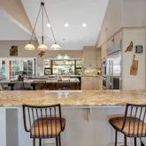 - Kitchen Features: Breakfast Bar, Stone Counters, Dishwasher, Double Oven, Disposal, Gas Range/Cooktop, Ice Maker Hookup, Kitchen Island, Microwave, Oven Built-in, Pantry, Refrigerator, Self-Cleaning Oven, Updated Kitchen