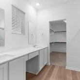 The Simone is a two-story home designed for everyday ease, with smart spaces and an open layout that keeps everyone connected. The entrance foyer welcomes you in with a conveniently placed utility room, storage closet, and half bath at the front of the home—perfect for staying organized from day one. The main living area opens into a bright, open floorplan where the kitchen anchors the space and overlooks both the family room and adjacent breakfast area. The kitchen includes a center island, quartz countertops, and a walk-in pantry, while the large family room is filled with abundant windows and natural light for a warm, inviting feel. Located at the back of the first floor, the primary suite offers privacy and comfort with double doors leading to the ensuite bath featuring dual vanities, a walk-in shower, and a large walk-in closet with extra under-stairs storage—a bonus you’ll appreciate every day. Upstairs, you’re greeted by a spacious game room and three additional bedrooms, plus a full bath with a dual vanity to keep mornings running smoothly. Finished with carpet and LVP flooring throughout, the Simone is ready this March and ready to welcome you home. Visit our model and ask about current buyer incentives!