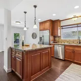 - Room Kitchen Features: Granite Counters, Kitchen Open to Family Room, Kitchen Island, Pots & Pan Drawers, Remodeled Kitchen, Self-closing drawers, Built-in Trash/Recycling