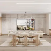 Northern Center offers a thoughtfully curated collection of amenities designed to enhance daily living. The resident lounge flows effortlessly into a beautifully designed outdoor terrace, creating a harmonious indoor-outdoor space perfect for relaxation or social gatherings. Surrounded by greenery, the terrace serves as a serene escape from the city’s hustle. Residents can enjoy a well-equipped gym, calming sauna room, immersive golf simulator, and a vibrant kids’ playroom. An on-site garage is also available for added convenience. Images are artist renderings. Tax and Common Charge estimates are based upon pre-completion assessments of the property. The complete terms are in an offering plan available from the Sponsor (File No: CD23-0339).