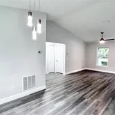 - Interior Features: Kitchen/Family Room Combo, Living Room/Dining Room Combo, Open Floorplan, Split Bedroom, Stone Counters, Thermostat, Vaulted Ceiling(s), Walk-In Closet(s), Ceiling Fan(s)