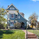 Rarely does an opportunity arise to own a property as distinctive as The Bliss House, named for its original owner, Dr. Gerald Bliss, the first Surgeon General of the Colorado Territory. This residence was designed by renowned architects William Lang & Pugh, celebrated for their blend of Victorian styles. One of only five remaining William Lang homes on Stuart Street, the Bliss House retains exceptional original features, including stained-glass windows, rich woodwork, operable transoms, pocket doors, & French doors. Classified as a Queen Anne Victorian, it showcases a two-story bay front elevation & two-story turret with open balcony. Inside, the home is beautifully preserved with a vaulted carved-wood staircase, original tile fireplace, stained wood trim, mullioned windows, & period detailing throughout. Lang chose a house "symbol" making each home unique. This home showcases the Oak leaf. Look for it carved into the doorframes and banister railings. Modern updates complement its history, including upgraded systems, brand new appliances, and a spa-inspired bathroom with an AirSpa clawfoot tub. The finished third-floor attic adds living space & direct access to the turret balcony with tree-top and seasonal mountain views. The property’s signature feature is its expansive 12' x 24' covered front porch, ideally oriented to stay cool in summer & capture morning sunrises. The corner lot offers private, low-maintenance outdoor space with a deck, artificial turf, & ample off-street parking, including room for an RV pad behind double gates. Just three blocks from Sloan’s Lake Park, residents enjoy close proximity to trails, the marina, and downtown skyline views. The home also offers convenient access to downtown Denver, major highways, & the Rocky Mountains. The Bliss House is one of Denver’s true architectural treasures—where timeless craftsmanship, historic charm, & modern comfort unite.