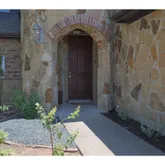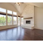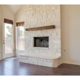 - Room Description: Fireplace in a floor-to-ceiling stone hearth with a wood mantle