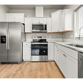 - Kitchen Appliances: Dishwasher, Free Standing Range, Free Standing Refrigerator, Microwave, Quartz