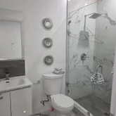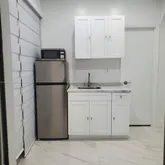 closet space, remodeled bathroom, microwave, and refrigerator. Independent entrance.