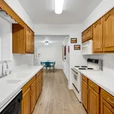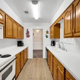 - Room Kitchen Features: Not Updated, Solid Surface Countertops