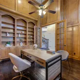 A grand foyer welcomes you with a dramatic staircase and abundant natural light streaming through expansive butted glass windows. The library showcases beautiful custom wood paneling, while the media room on the first floor creates the perfect setting for movie nights and gatherings.