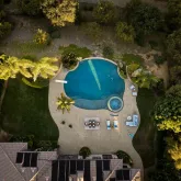 - Pool Features: Below Ground, Private, Solar Heat, Diving Board, Pebble, Saltwater