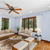 Discover this stunning 4 bedroom home in the heart of Matthews, NC, offering a perfect blend of modern updates and charming outdoor space. The interior boasts an updated kitchen featuring new soft-close cabinet doors and drawers, granite countertops, and a stylish tile backsplash. Enjoy the spacious, vaulted living and dining area with a cozy central fireplace, perfect for gatherings.