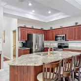 - Interior Features: Ceiling Fan(s), Eating Space In Kitchen, High Ceilings, Kitchen/Family Room Combo, Open Floorplan, Primary Bedroom Main Floor, Stone Counters, Thermostat, Tray Ceiling(s), Walk-In Closet(s)