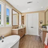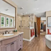 - Bathroom: Double Sinks, Half on Ground Floor, Outside Access, Primary - Oversized Tub, Primary - Stall Shower(s), Showers over Tubs - 2+, Tub in Primary Bedroom